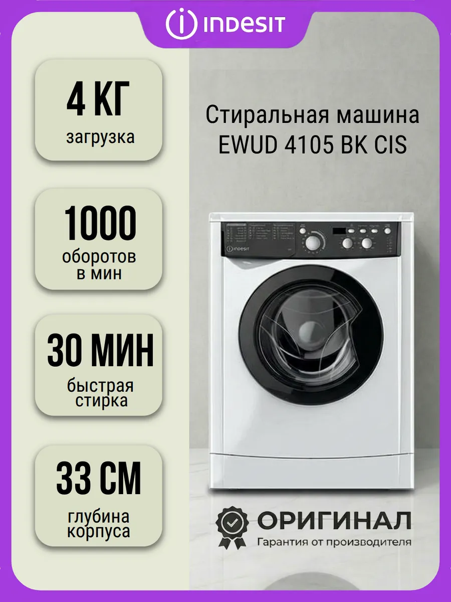 Узкая стиральная машина Indesit,глубина 33 см, макс. загрузка 4 кг., скорость отжима 1000 об./мин.<br>