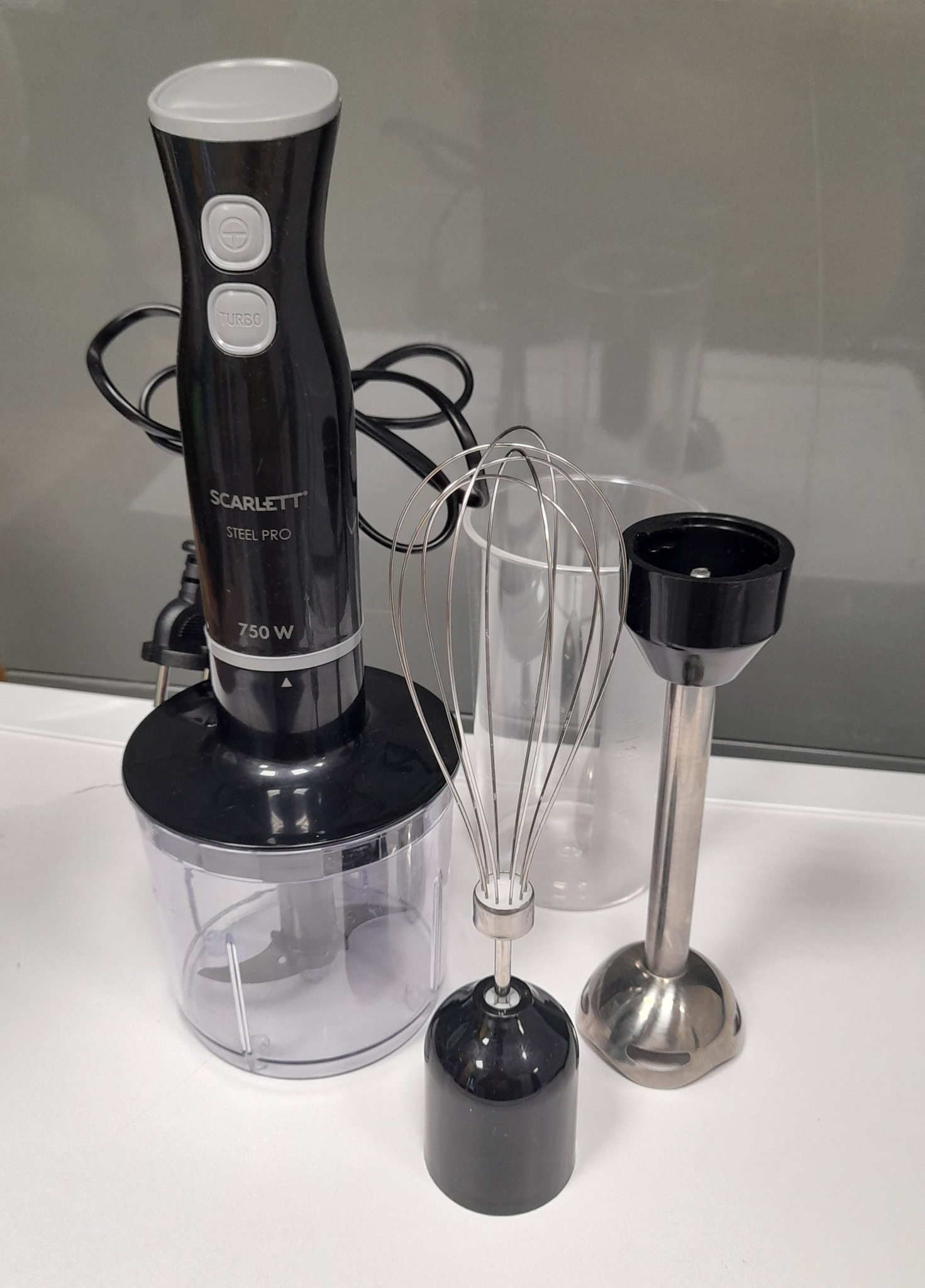 Б/у Мощность: 750 Вт Комплектация: мерный стакан, насадка-блендер, насадка-венчик, насадка-измельчитель Гарантия продавца 1 месяц